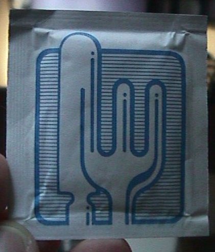 A cloth towel in a foil wrapper sent to me from Tom in Sweden.