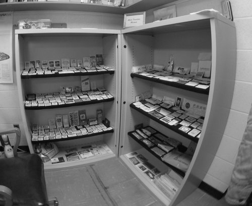An old photo of the Moist Towelette Museum in the first display case!