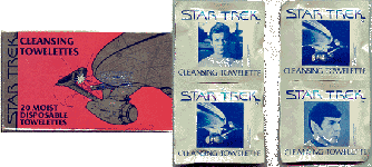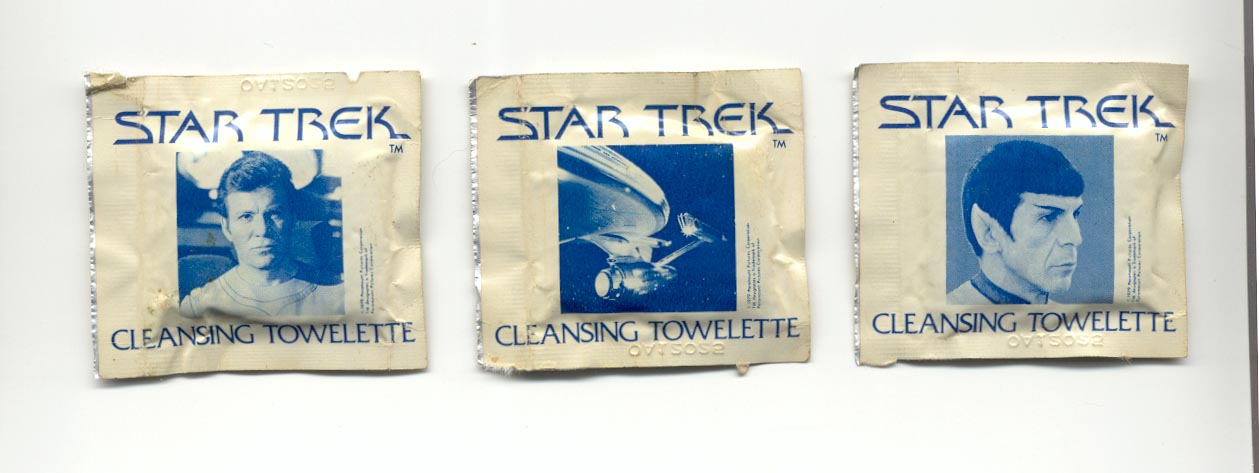 Photos of four Star Trek cleansing toweletts sent to me from Dana:
