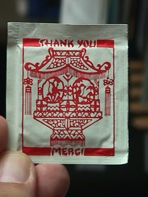 A cloth towel in a foil wrapper sent to me from Tom in Sweden.