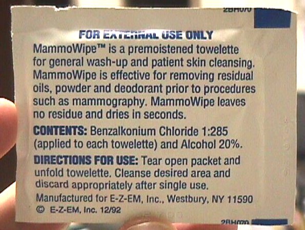 MammoWipe patient cleansing towelette