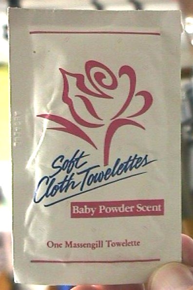 Note: These towelettes are only available in the online museum and are not part of the actual museum collection.