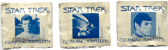 Photos of four Star Trek cleansing toweletts sent to me from Dana: